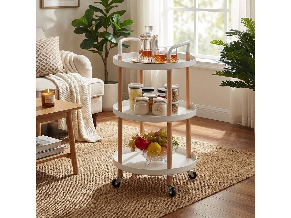 Lebensmittelwagen rund 3 Ablagen Design Nordic Räder Biky Plus - Weiß