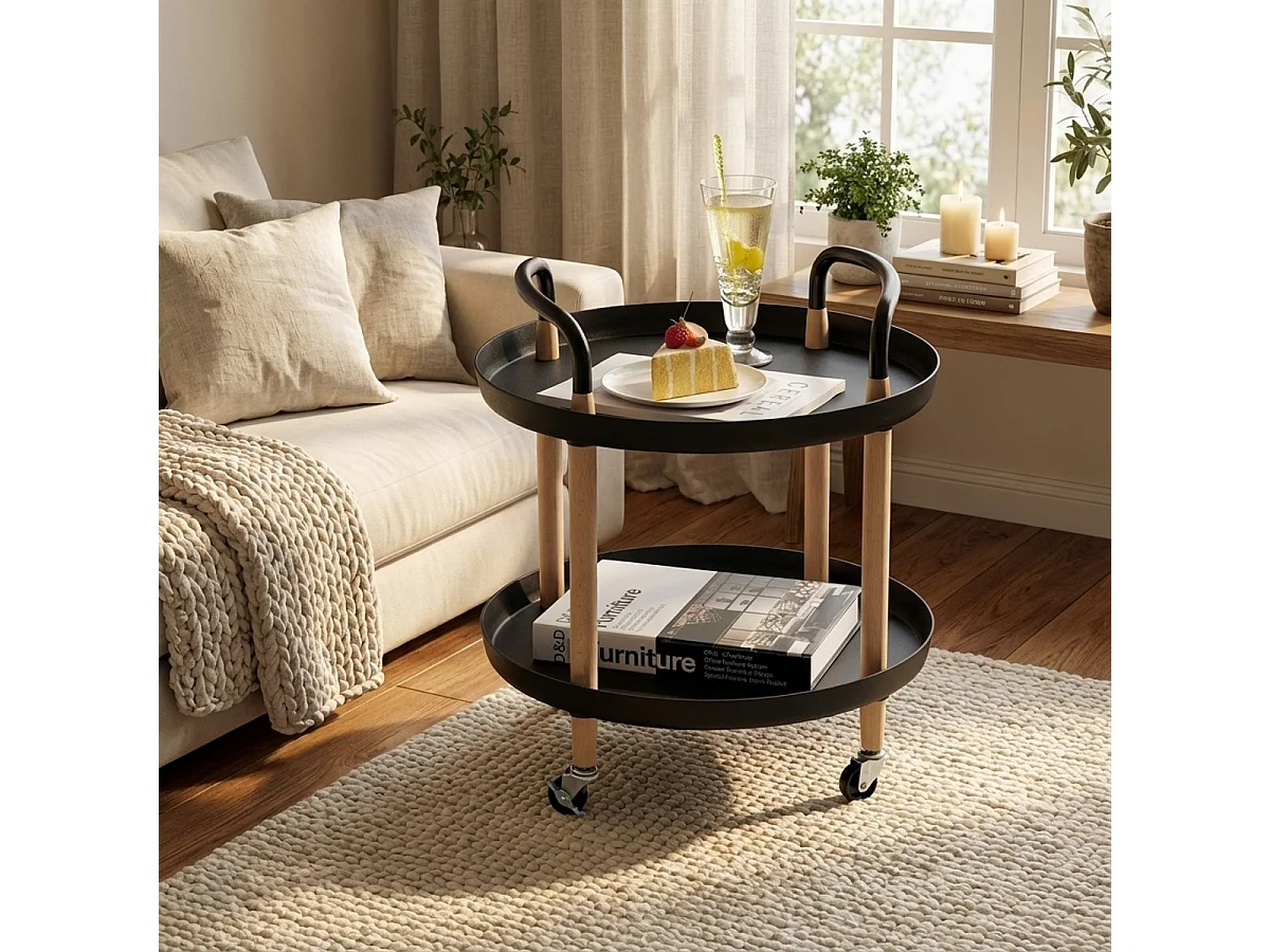 Lebensmittelwagen rund im skandinavischen Design mit Rädern Biky - Schwarz