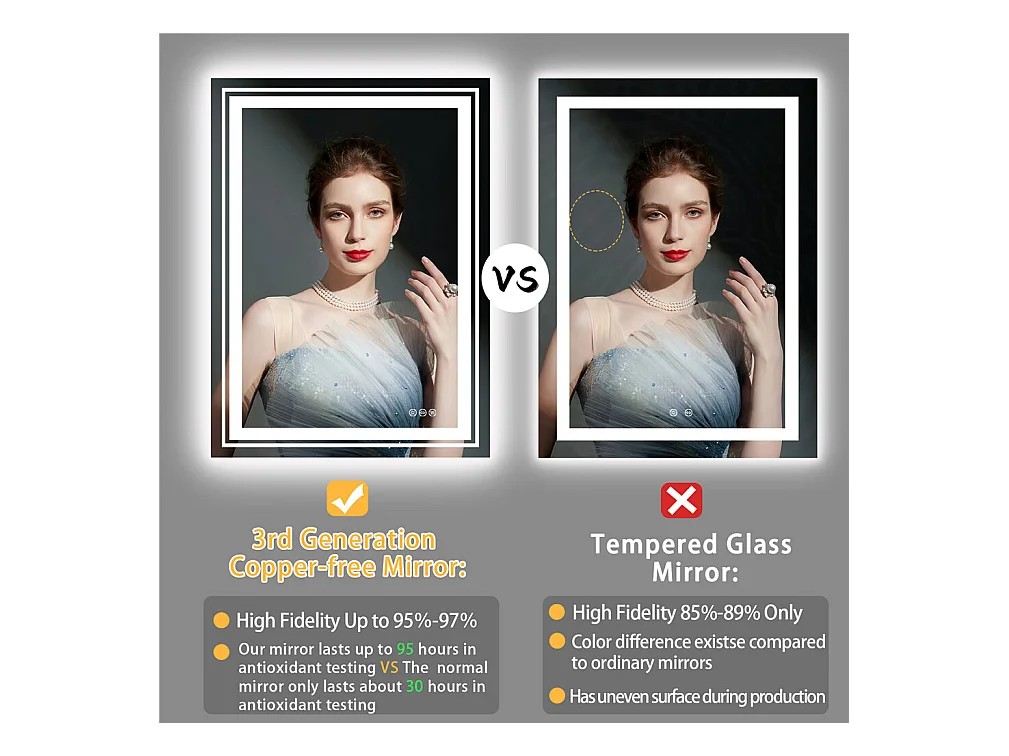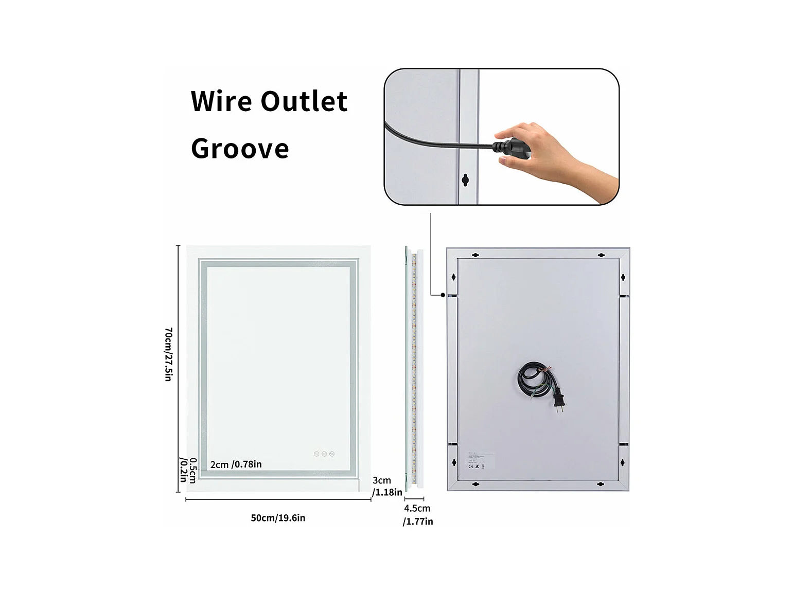 LED Badezimmerspiegel 70x50cm rechteckiger hinterleuchteter Wandspiegel beschlagfrei 50x70cm