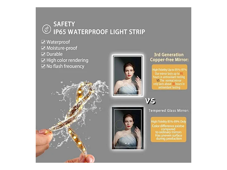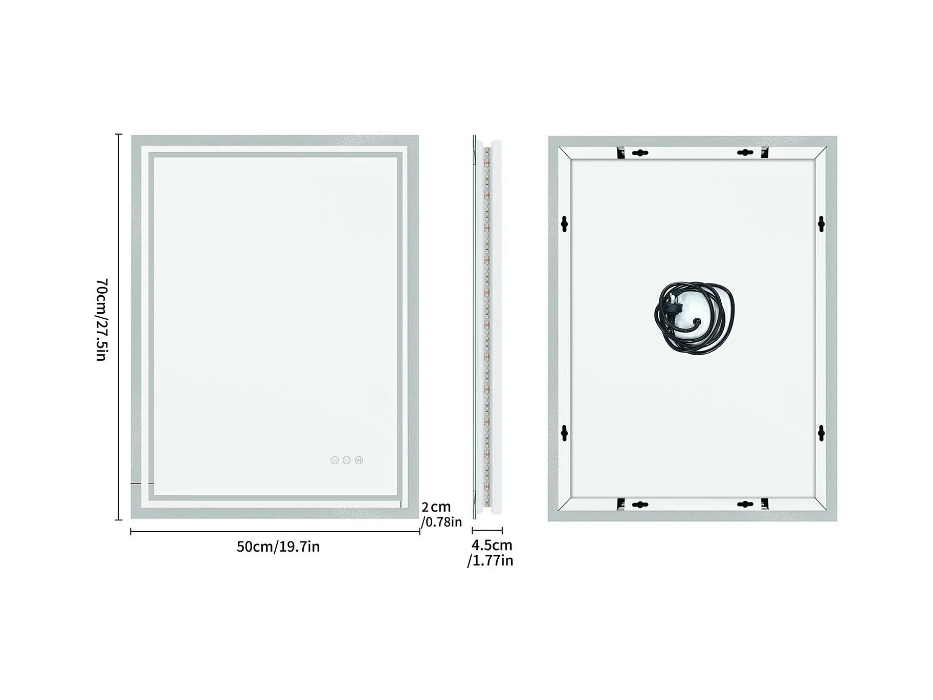 LED Badezimmerspiegel 70x50cm Wandspiegel mit Antibeschlagbeleuchtung 50x70cm