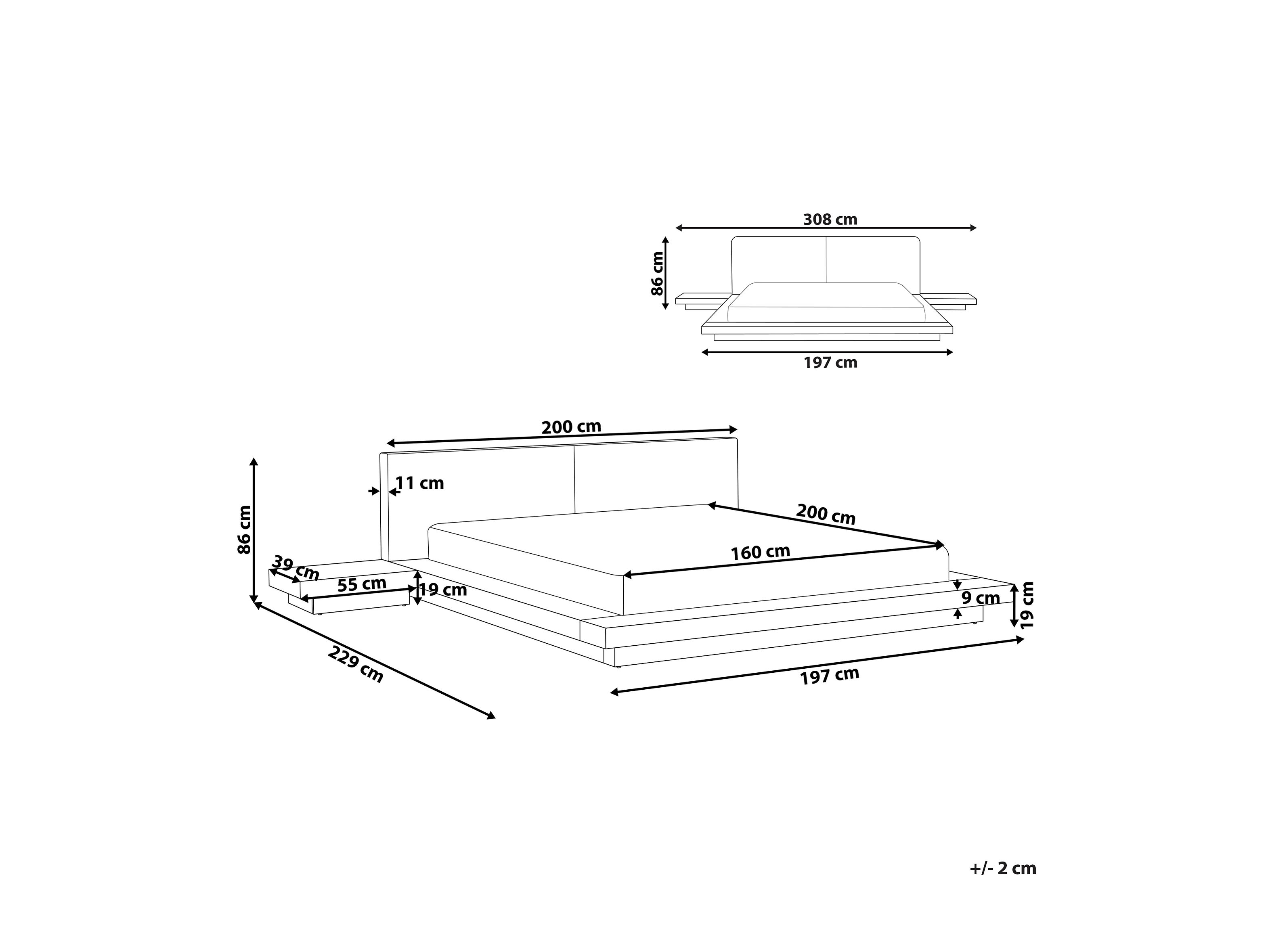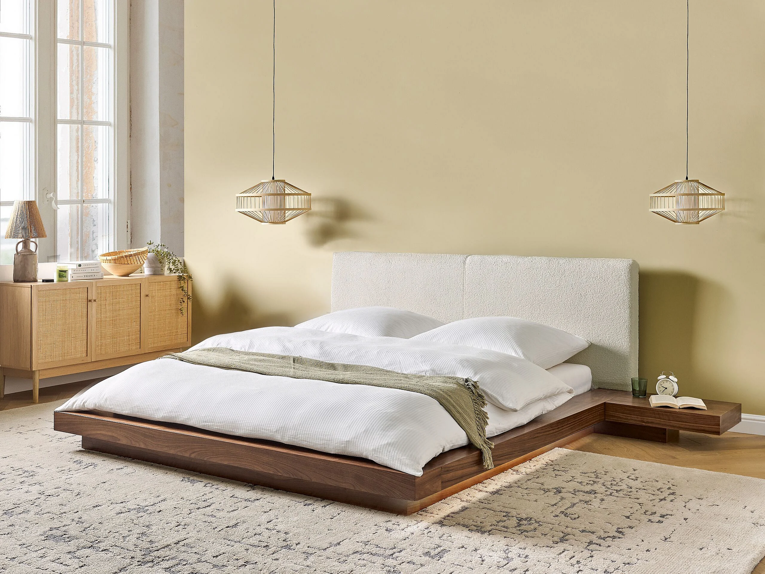 LED Bett Bouclé Holzoptik braun mit 2 Nachttischen Lattenrost 160x200 cm Zen