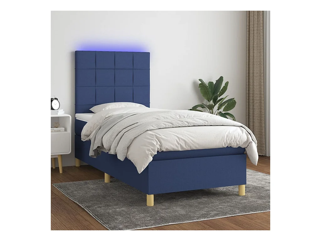 LED-Boxspringbett mit Matratze,Bett für Schlafzimmer Blau 90x200 cm Stoff -CFW12404