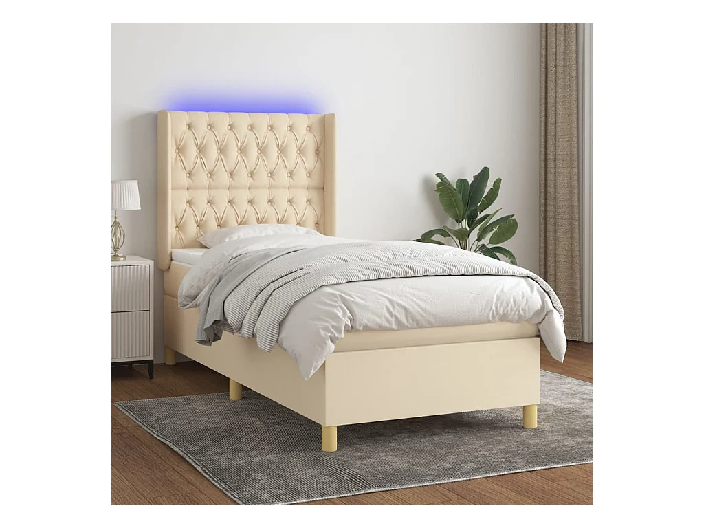 LED-Boxspringbett mit Matratze,Bett für Schlafzimmer Creme 100x200 cm Stoff -CFW78025