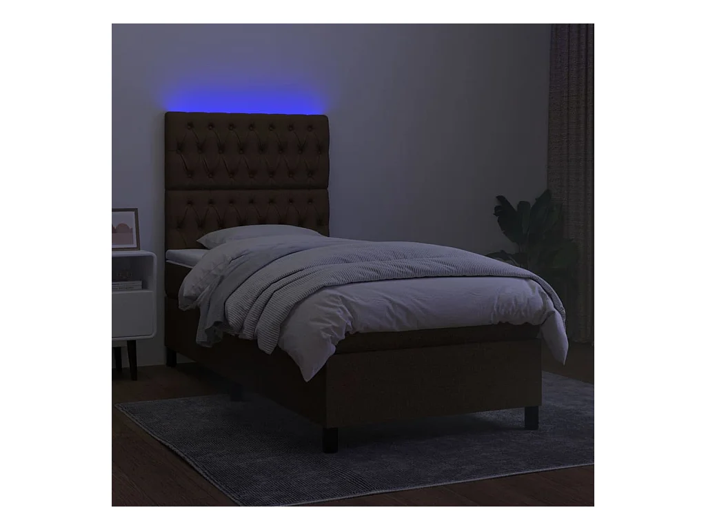 LED-Boxspringbett mit Matratze,Bett für Schlafzimmer Dunkelbraun 90x200 cm Stoff -CFW61417