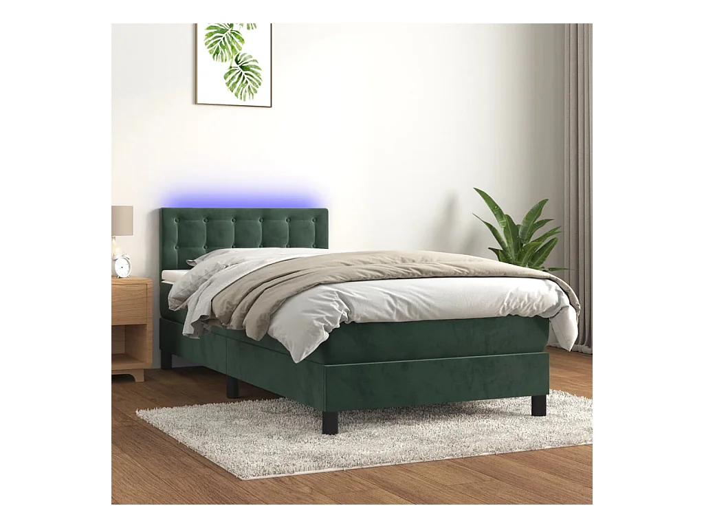 LED-Boxspringbett mit Matratze,Bett für Schlafzimmer Dunkelgrün 90x200 cm Samt -CFW26177