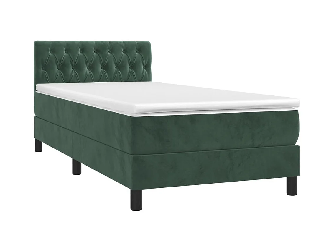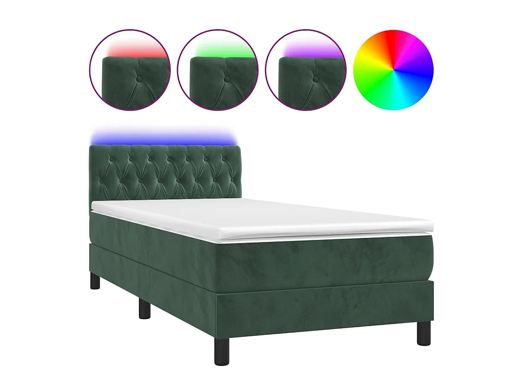 LED-Boxspringbett mit Matratze,Bett für Schlafzimmer Dunkelgrün 90x200 cm Samt -CFW27328