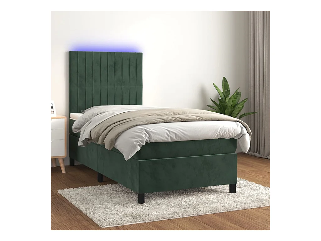 LED-Boxspringbett mit Matratze,Bett für Schlafzimmer Dunkelgrün 90x200 cm Samt -CFW74159