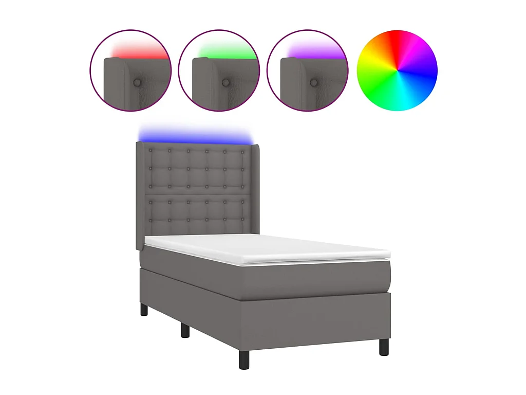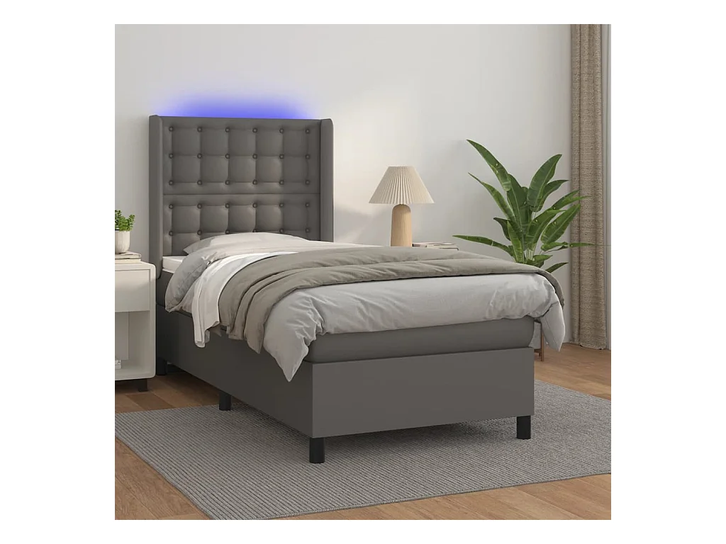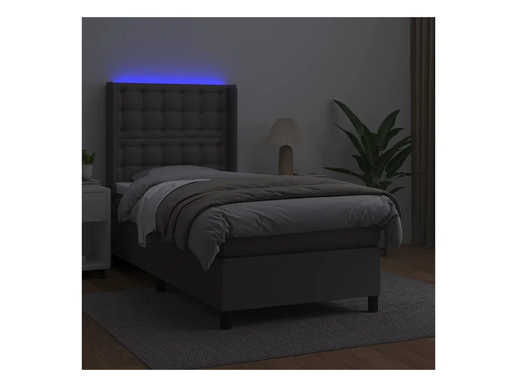 LED-Boxspringbett mit Matratze,Bett für Schlafzimmer Grau 90x190 cm Kunstleder -CFW35890