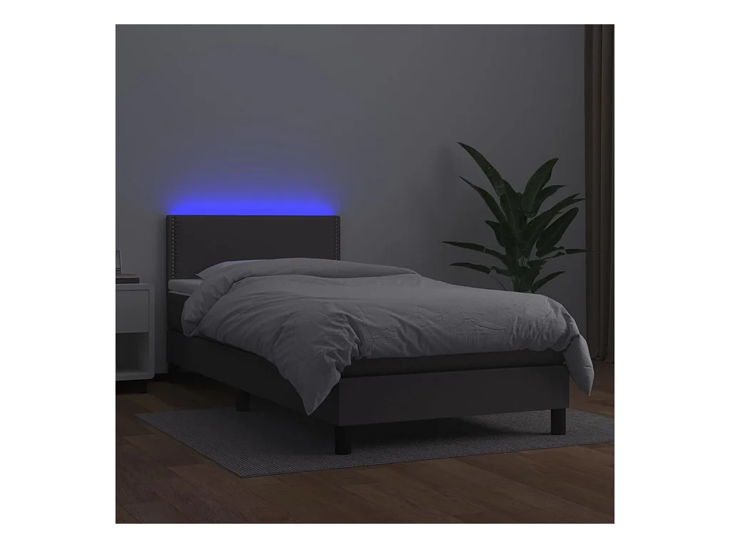 LED-Boxspringbett mit Matratze,Bett für Schlafzimmer Grau 90x200 cm Kunstleder -CFW10758