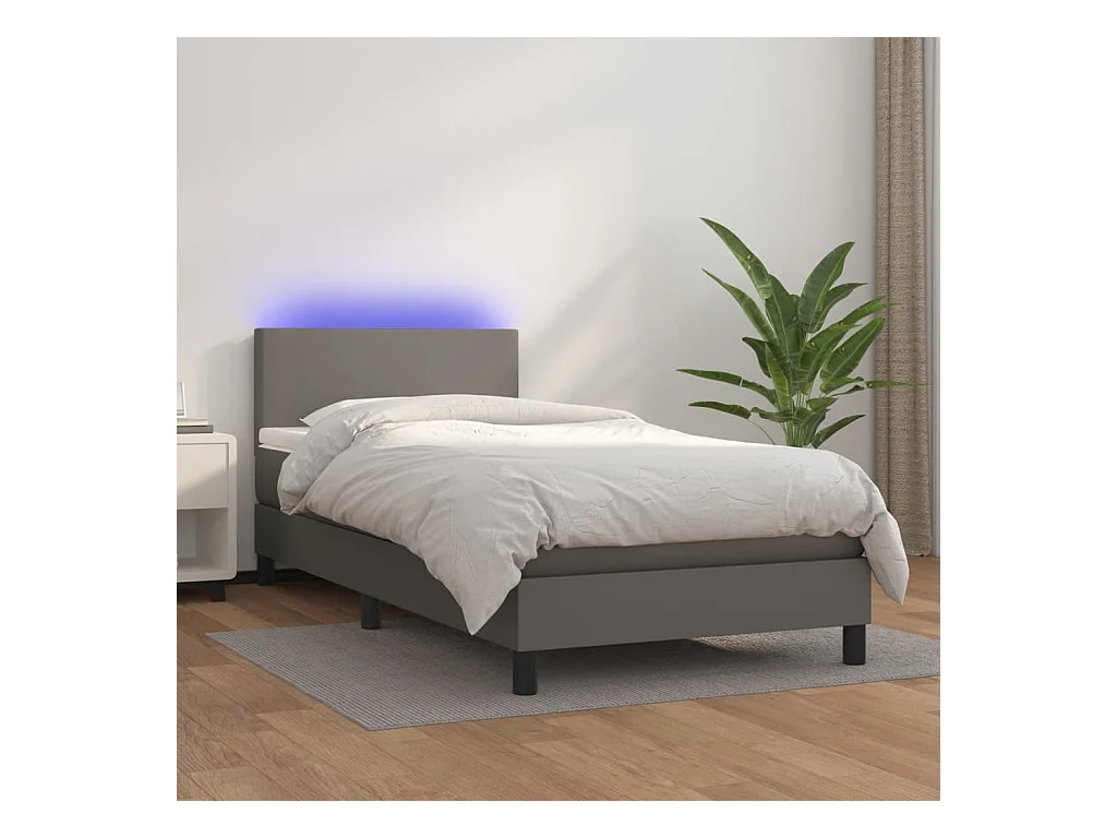 LED-Boxspringbett mit Matratze,Bett für Schlafzimmer Grau 90x200 cm Kunstleder -CFW36125