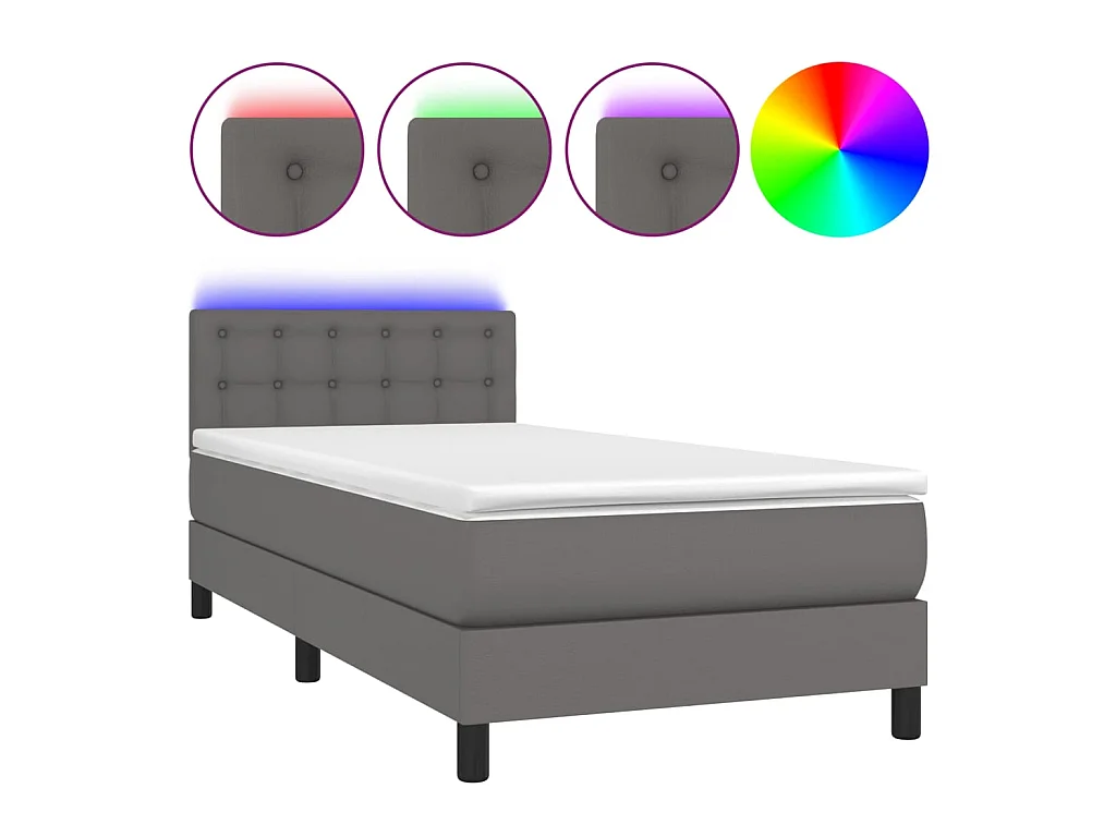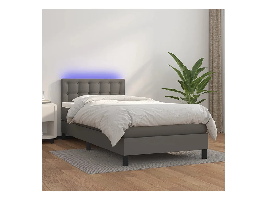 LED-Boxspringbett mit Matratze,Bett für Schlafzimmer Grau 90x200 cm Kunstleder -CFW42947