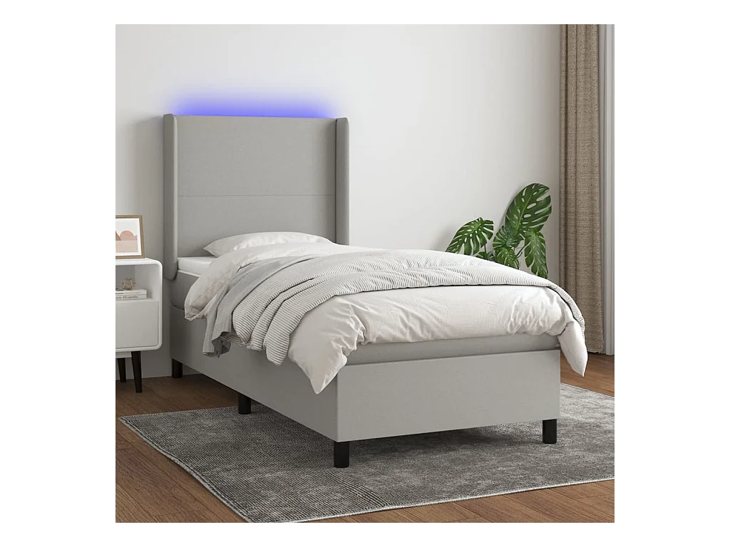 LED-Boxspringbett mit Matratze,Bett für Schlafzimmer Hellgrau 90x190 cm Stoff -CFW20798