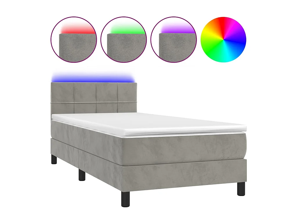 LED-Boxspringbett mit Matratze,Bett für Schlafzimmer Hellgrau 90x200 cm Samt -CFW44815