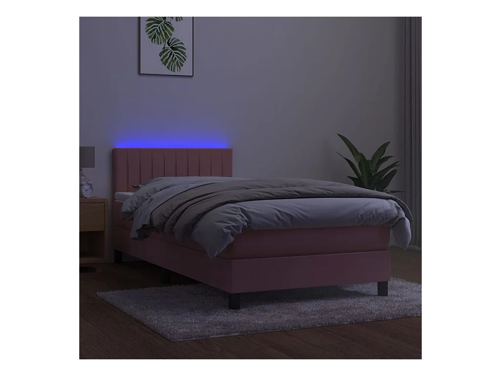 LED-Boxspringbett mit Matratze,Bett für Schlafzimmer Rosa 90x190 cm Samt -CFW37952
