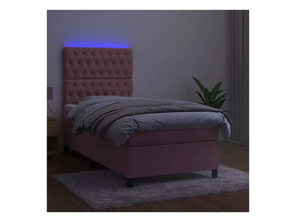 LED-Boxspringbett mit Matratze,Bett für Schlafzimmer Rosa 90x190 cm Samt -CFW41837
