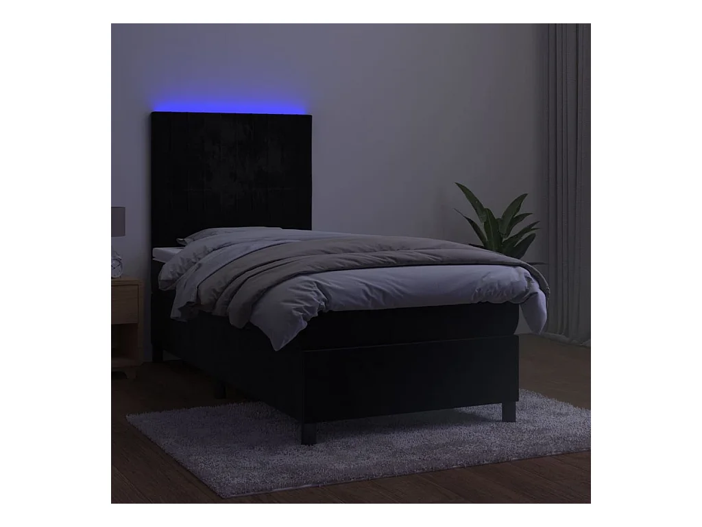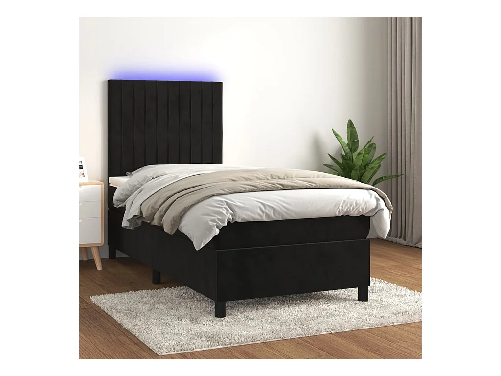 LED-Boxspringbett mit Matratze,Bett für Schlafzimmer Schwarz 90x190 cm Samt -CFW74831