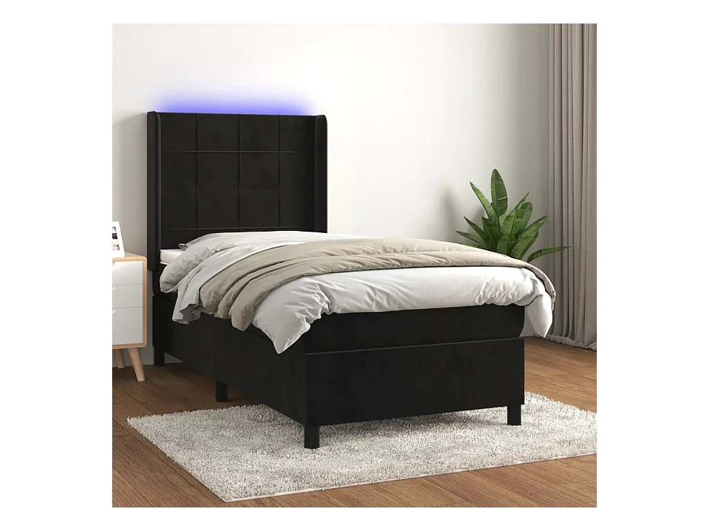 LED-Boxspringbett mit Matratze,Bett für Schlafzimmer Schwarz 90x200 cm Samt -CFW78255