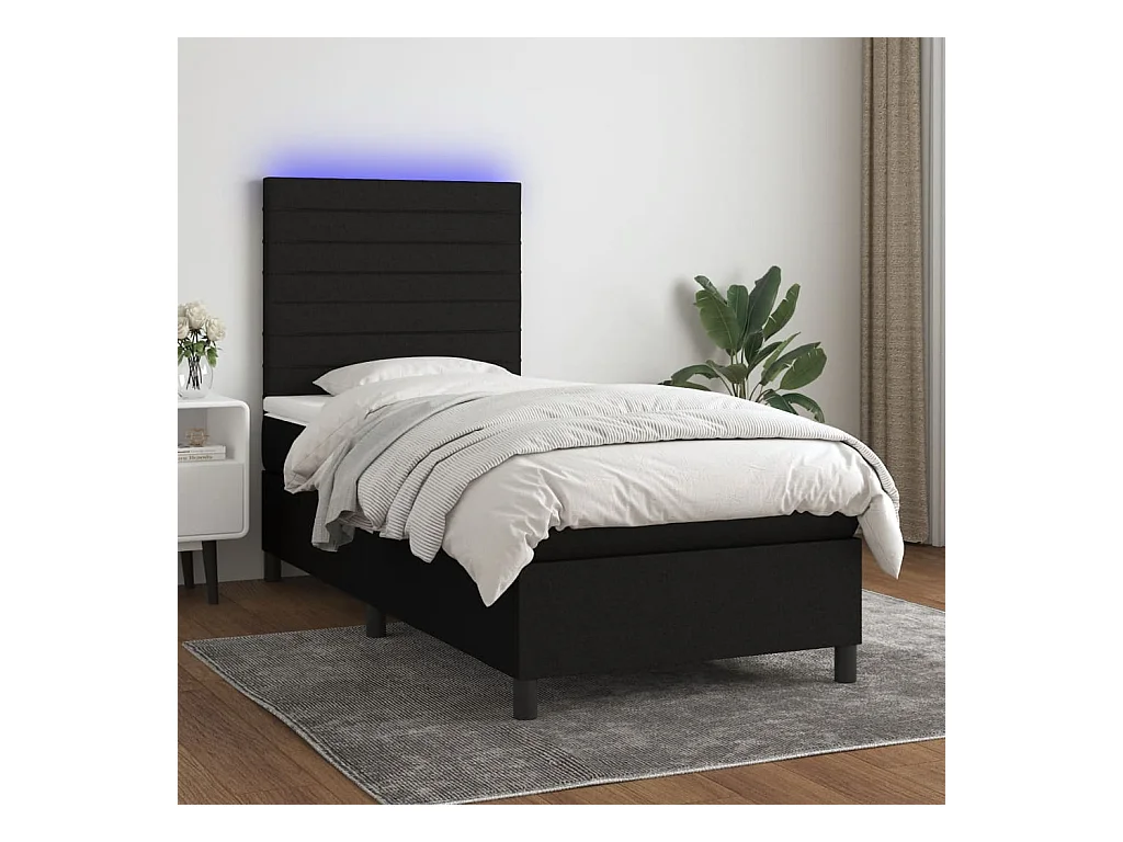 LED-Boxspringbett mit Matratze,Bett für Schlafzimmer Schwarz 90x200 cm Stoff -CFW43148