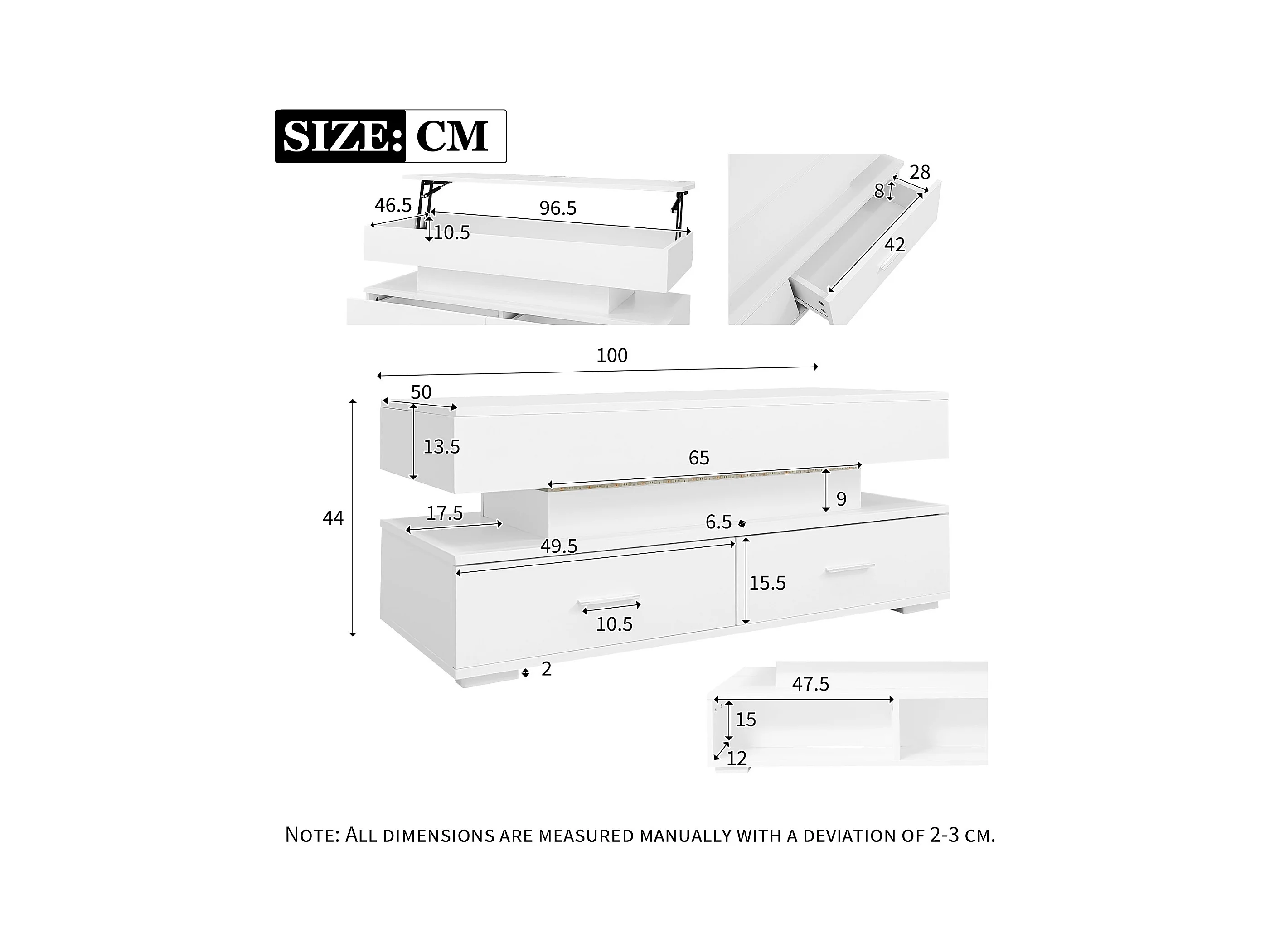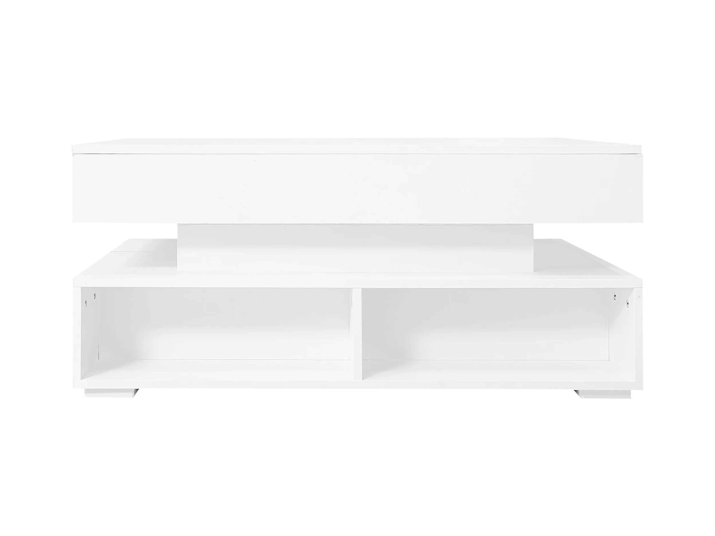 LED-Couchtisch mit 2 Aufbewahrungsschubladen und höhenverstellbarer Tischplatte - weiß