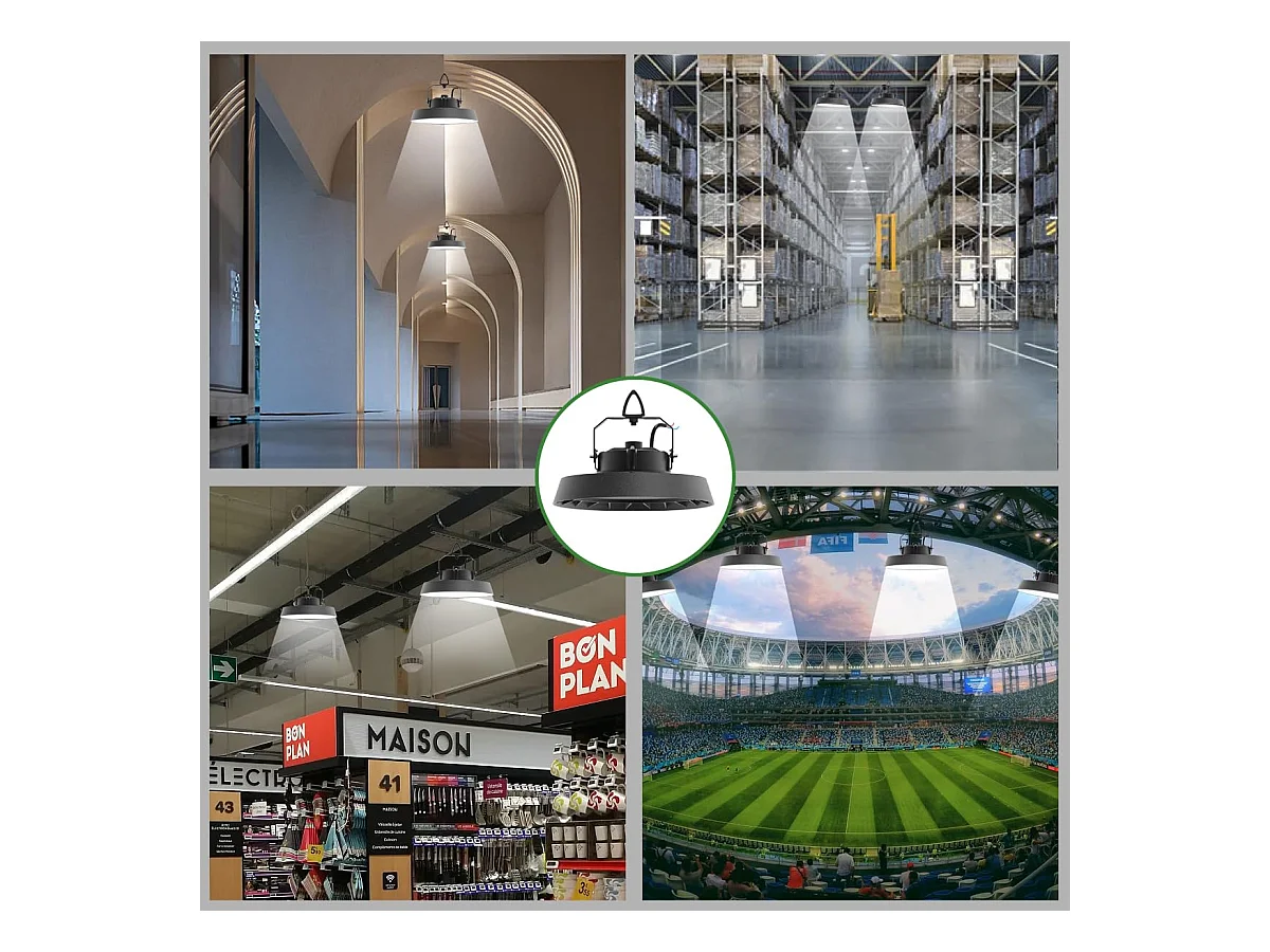 LED Hallenbeleuchtung 200W Kaltweiß 5000K, UFO LED Highbay Flutlicht, 90° Abstrahlwinkel, 34000lm IP65 Industrielampe, Hallenfluter