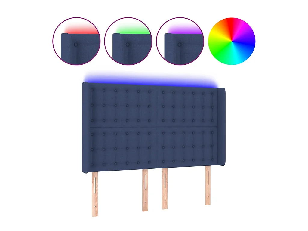 LED Kopfteil,Bettkopfteil Blau 147x16x118/128 cm Stoff -gkd954757
