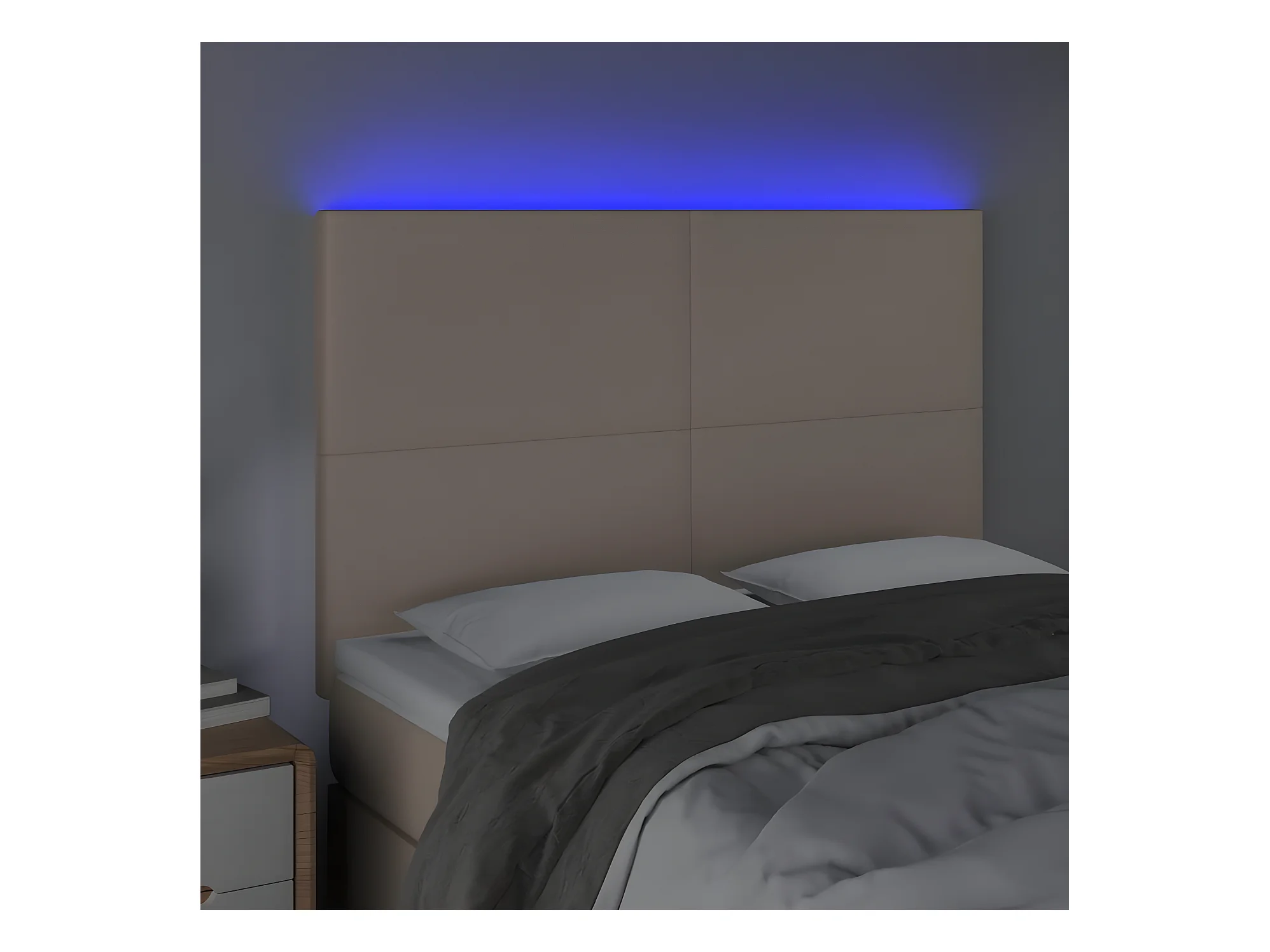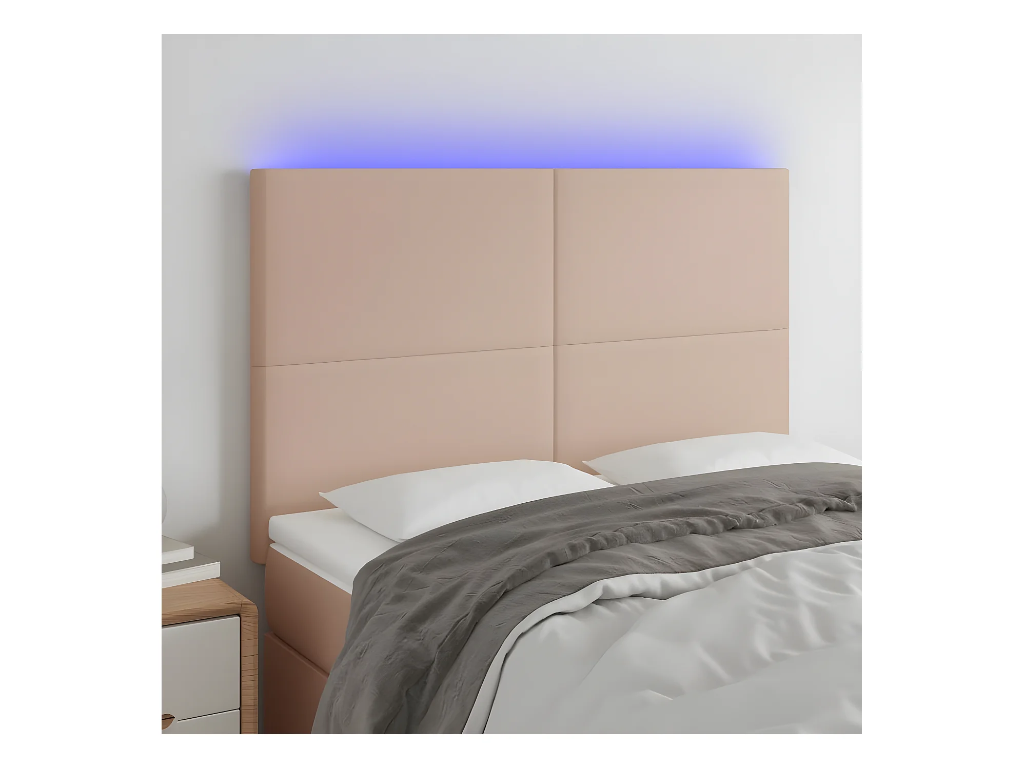 LED Kopfteil,Bettkopfteil Cappuccino-Braun 144x5x118/128cm Kunstleder -gkd469377