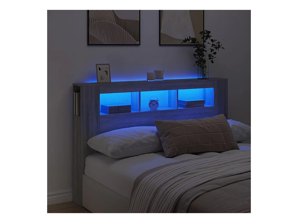 LED-Kopfteil,Bettkopfteil Grau Sonoma 160x18,5x103,5 cm Holzwerkstoff -gkd981057