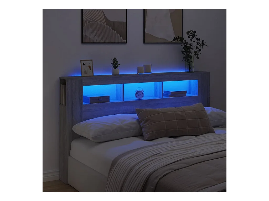 LED-Kopfteil,Bettkopfteil Grau Sonoma 180x18,5x103,5 cm Holzwerkstoff -gkd297648