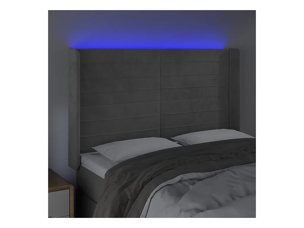LED Kopfteil,Bettkopfteil Hellgrau 147x16x118/128 cm Samt -gkd218539