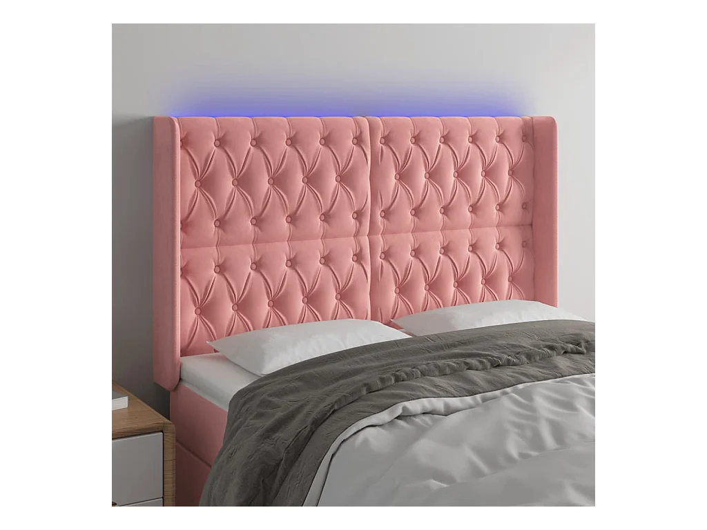 LED Kopfteil,Bettkopfteil Rosa 147x16x118/128 cm Samt -gkd209975