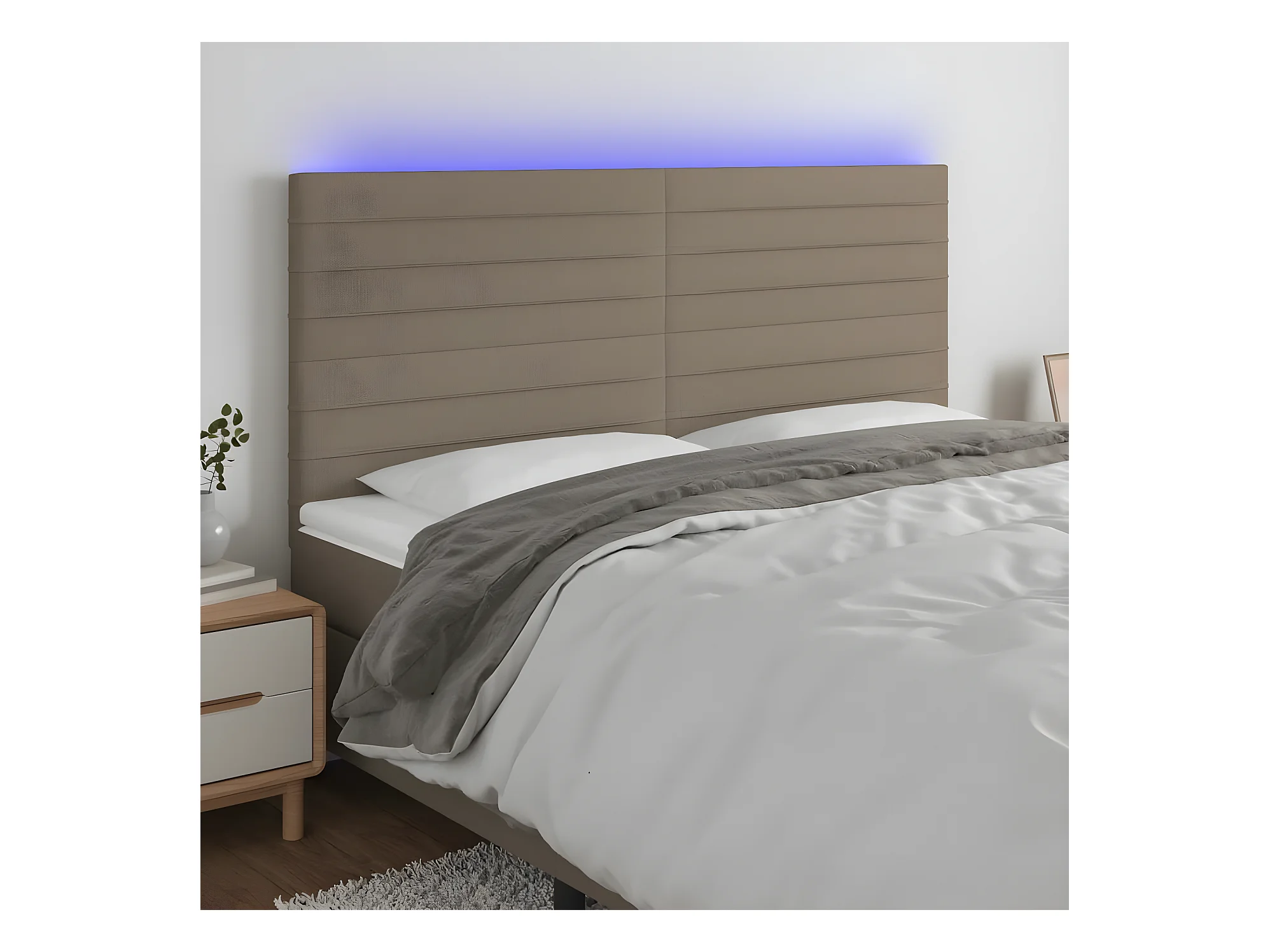 LED Kopfteil,Bettkopfteil Taupe 180x5x118/128 cm Stoff -gkd767470