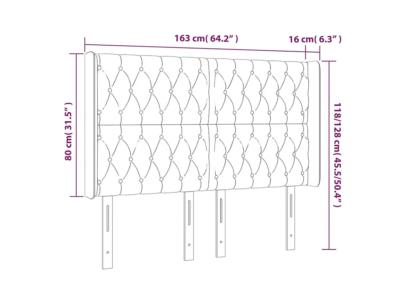 LED Kopfteil Dunkelgrau 163x16x118/128 cm Samt