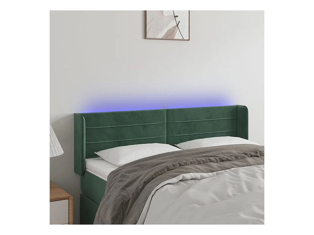 LED Kopfteil Dunkelgrün 147x16x78/88 cm Samt