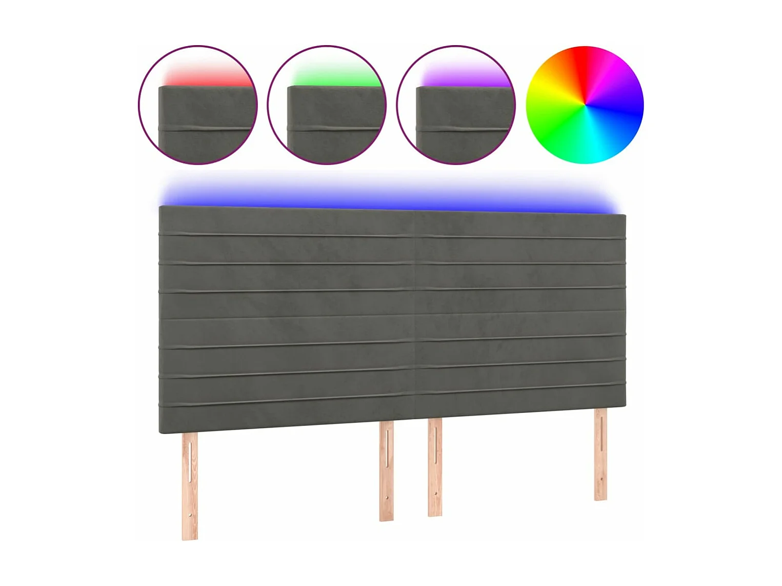 LED - Kopfteil für Bett | Bett-Kopfteil Dunkelgrau 160x5x118/128 cm Samt -MN621697