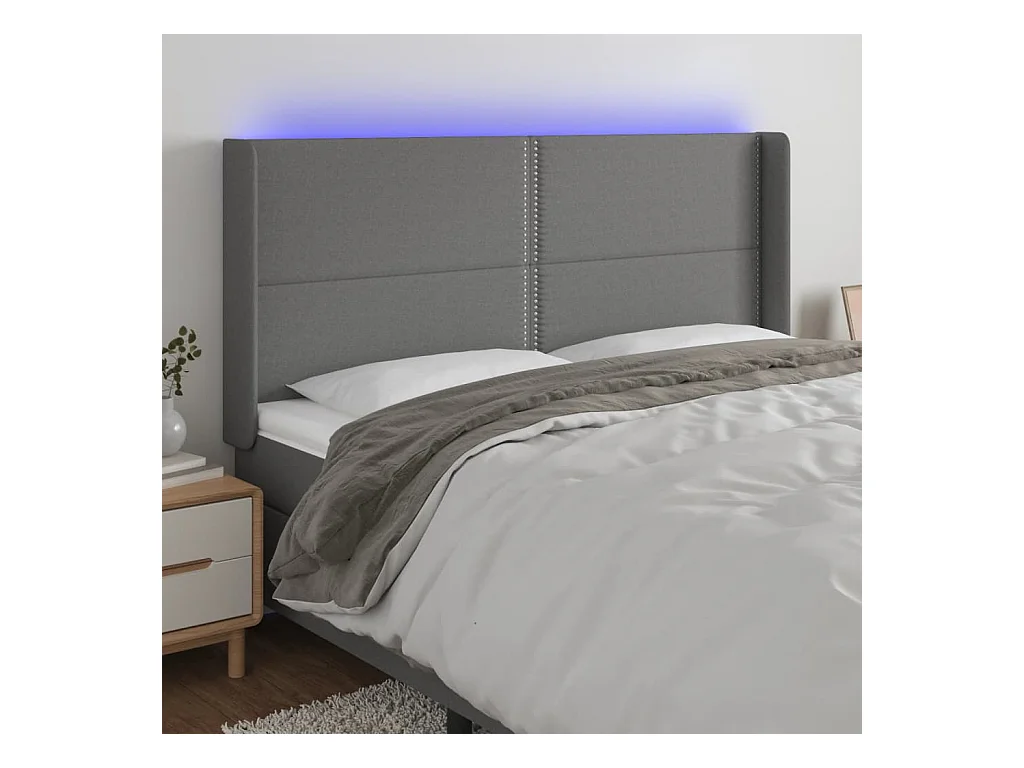LED - Kopfteil für Bett | Bett-Kopfteil Dunkelgrau 183x16x118/128 cm Stoff -MN185228