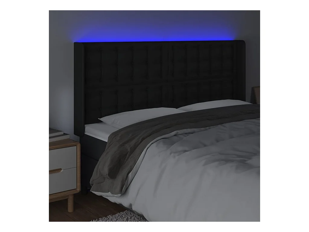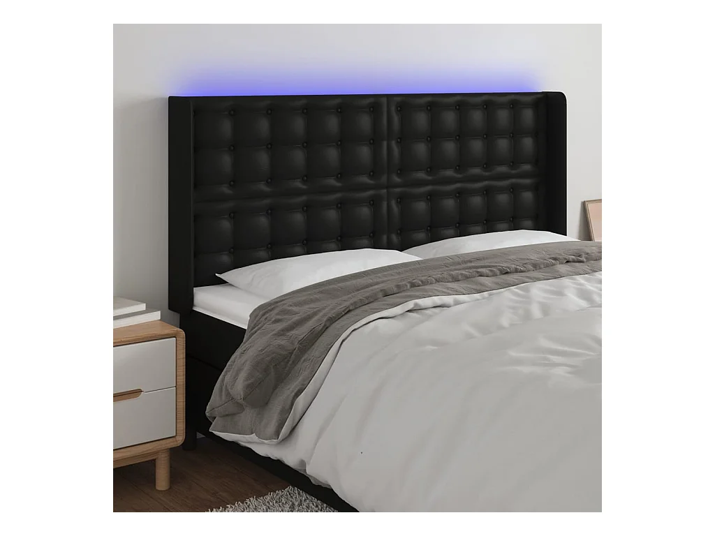 LED - Kopfteil für Bett | Bett-Kopfteil Schwarz 183x16x118/128 cm Kunstleder -MN579923