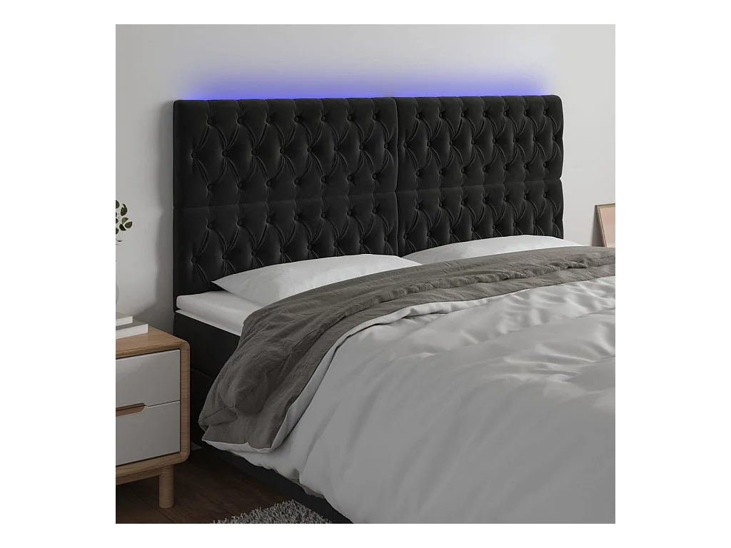 LED - Kopfteil für Bett | Bett-Kopfteil Schwarz 200x7x118/128 cm Samt -MN897572