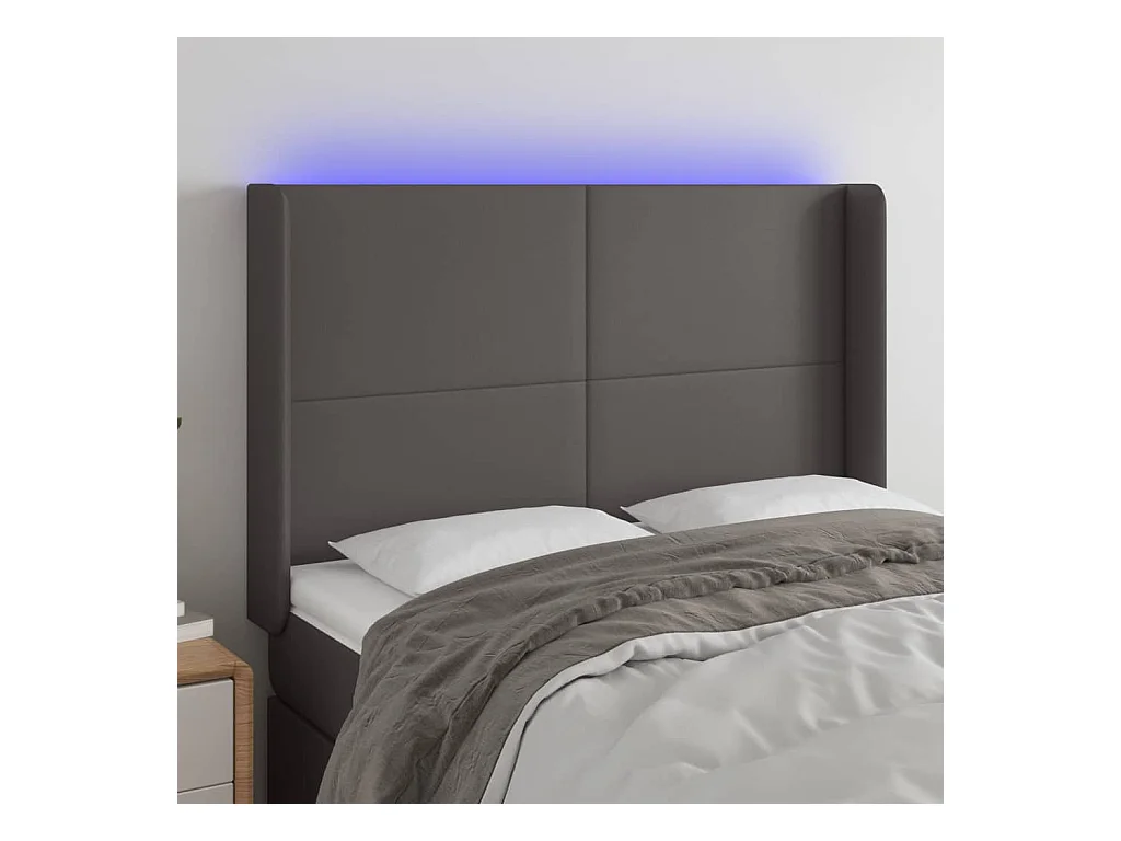 LED Kopfteil Grau 147x16x118/128 cm Kunstleder