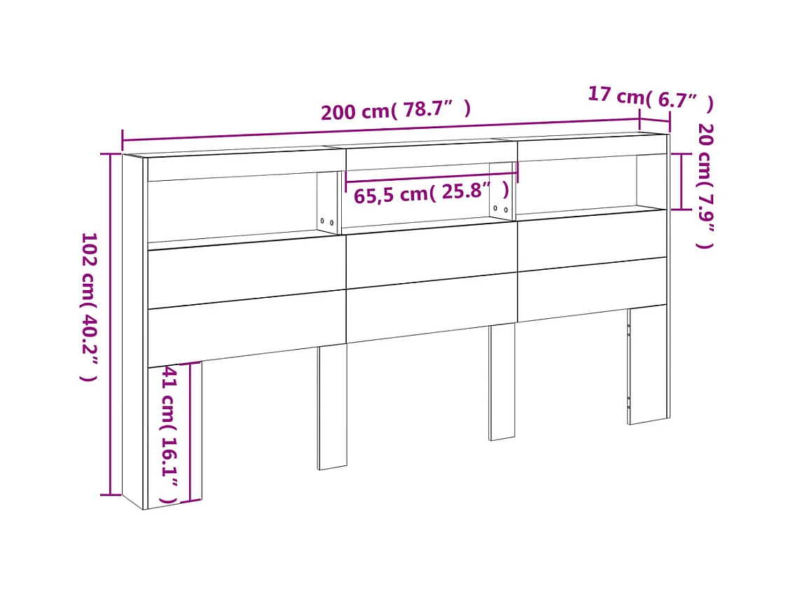 LED-Kopfteil mit Ablagen Sonoma-Eiche 200x17x102 cm