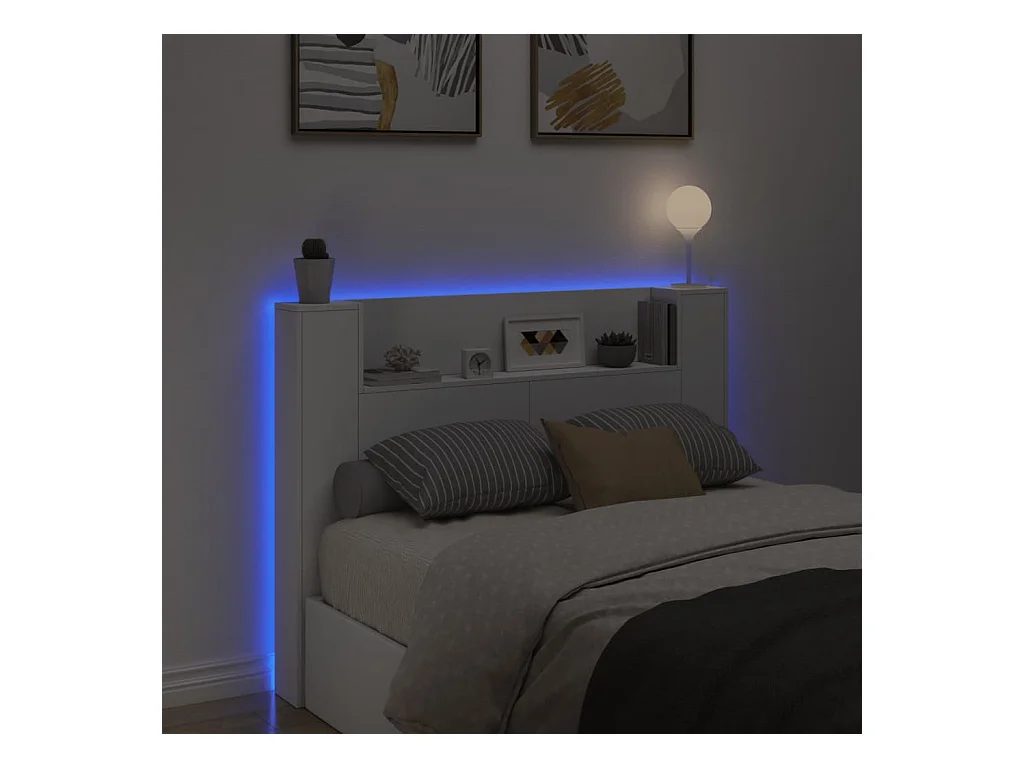 LED-Kopfteil mit Ablagen Weiß 140x16,5x103,5 cm