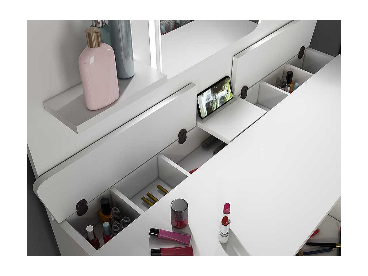 - Halterung für das Handy oder Tablet und zwei praktische Ablagefächer.