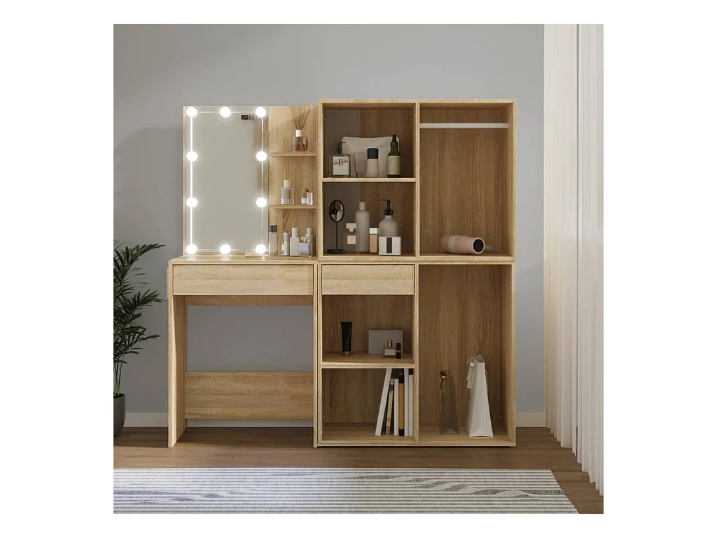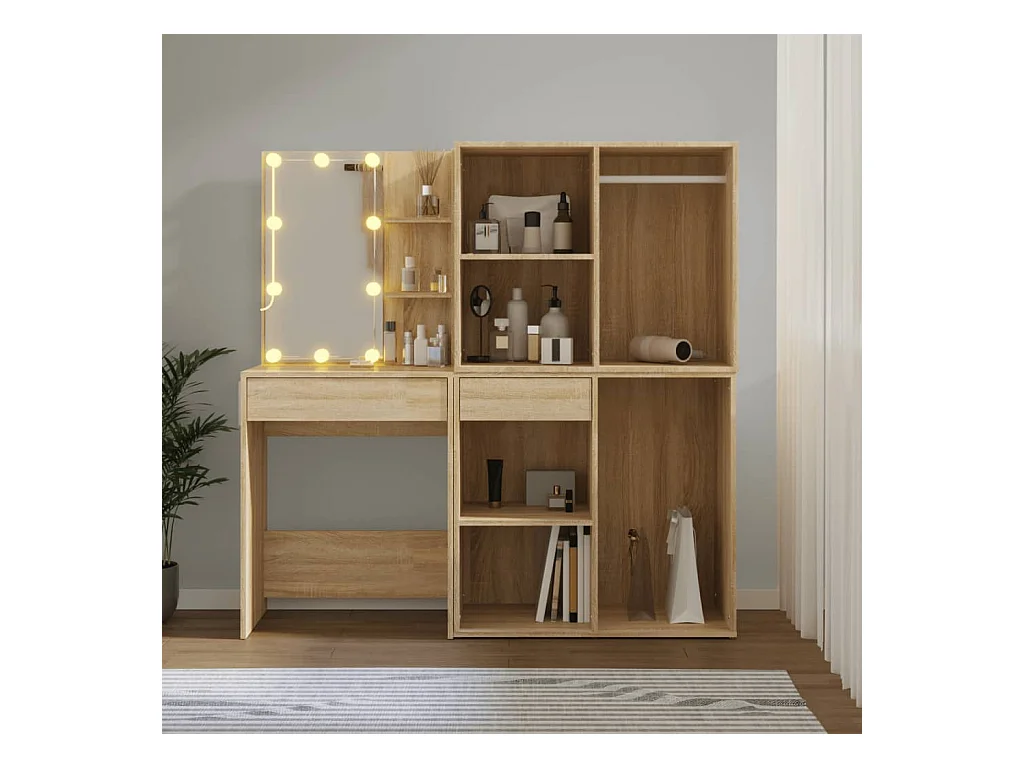 LED-Schminktisch mit 2 Schränken Sonoma-Eiche Holzwerkstoff