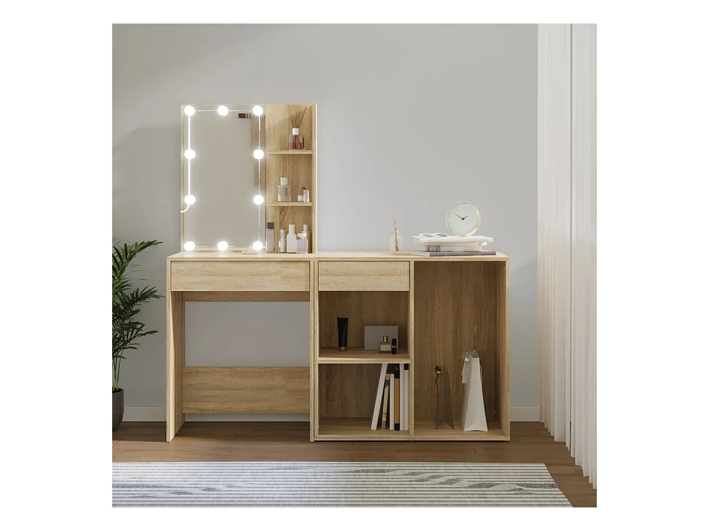 LED-Schminktisch mit Schrank Sonoma-Eiche Holzwerkstoff
