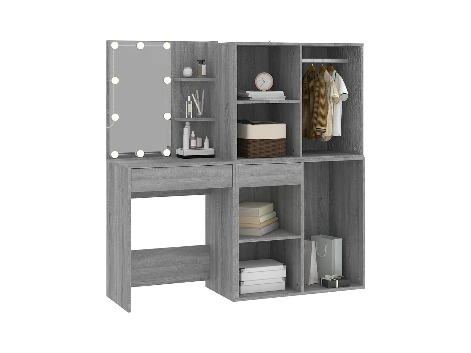 LED-Schminktisch mit Schränken Grau Sonoma Holzwerkstoff