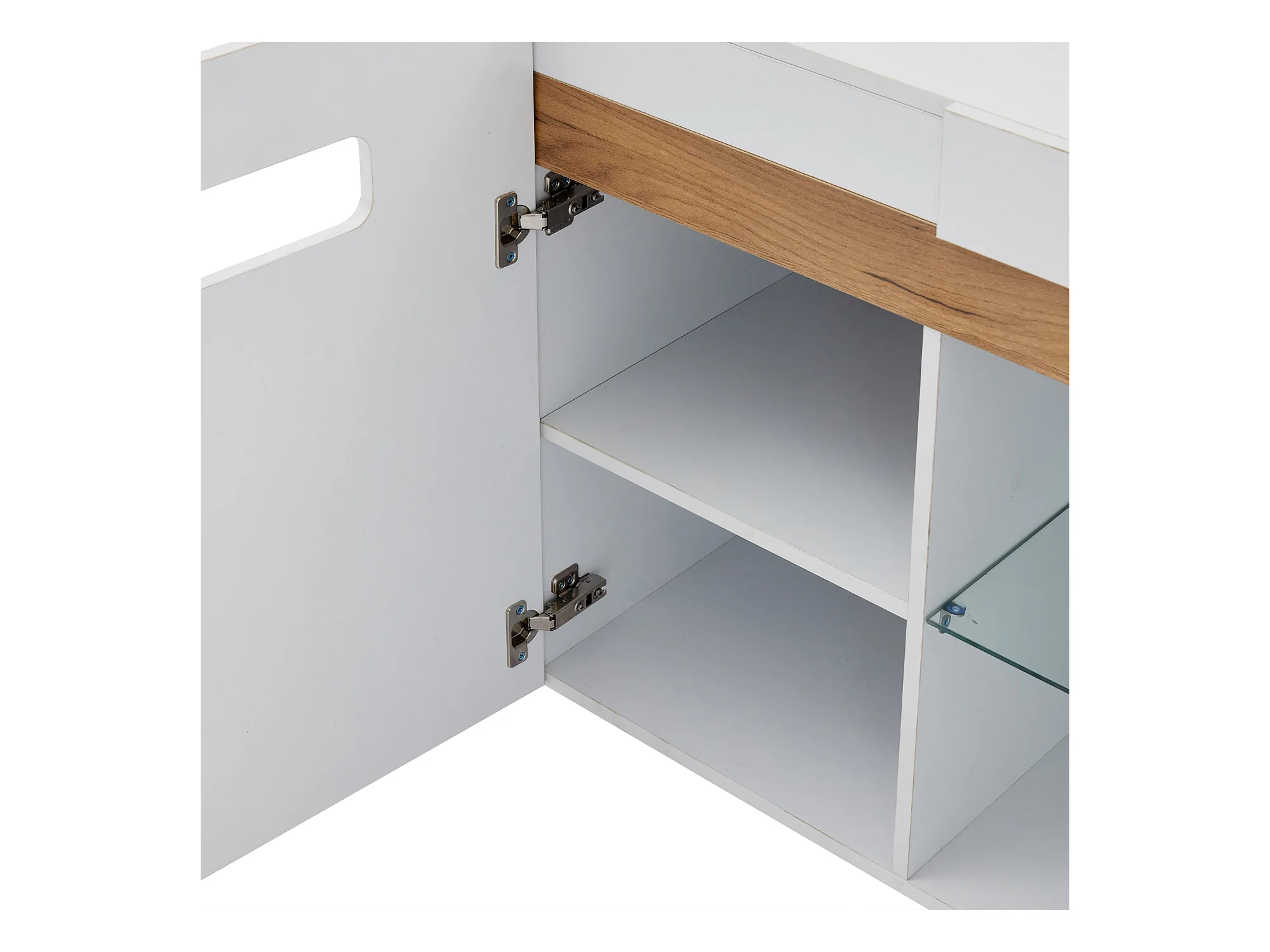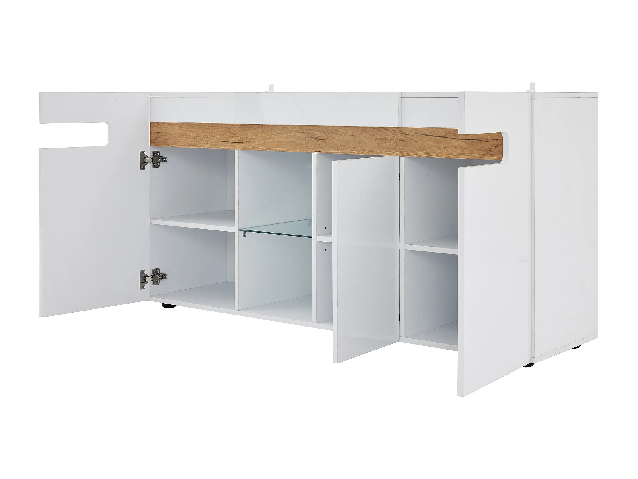 LED-Sideboard mit 3 Türen und 1 Glasablage – Weiß und naturholzfarben