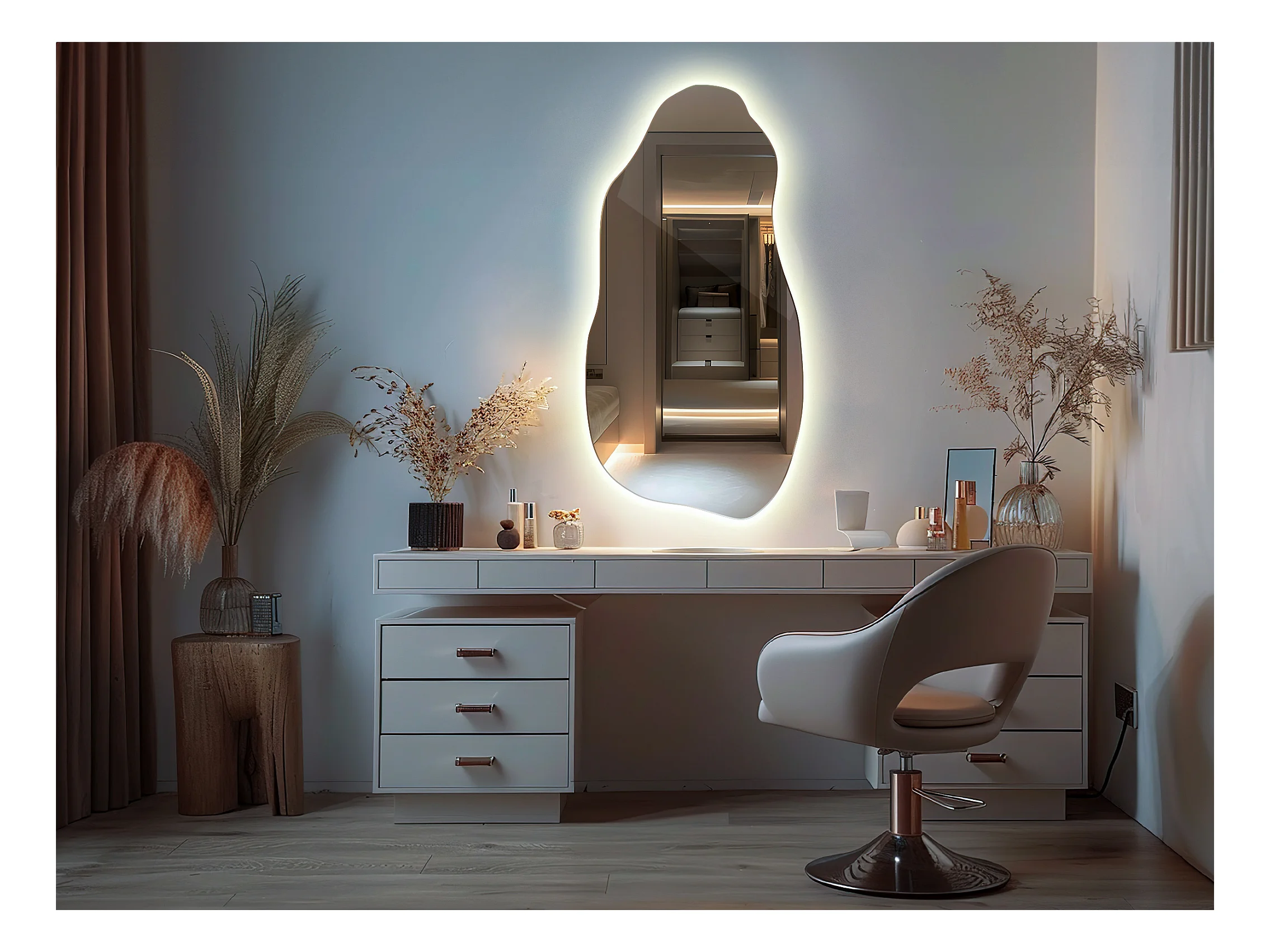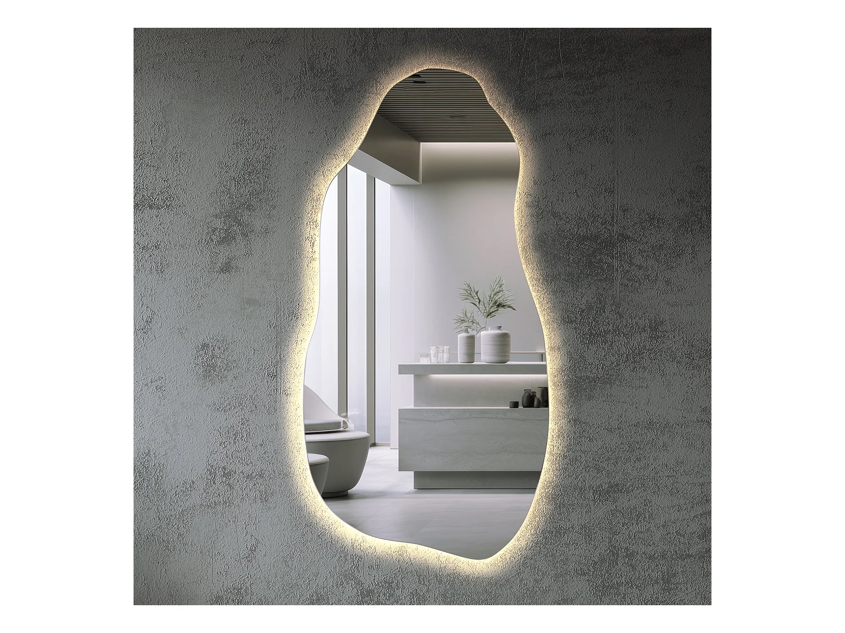 LED-Wandspiegel zum Aufhängen, dekorative moderne unregelmäßige Form 40 cm x 80 cm – neutrales Licht