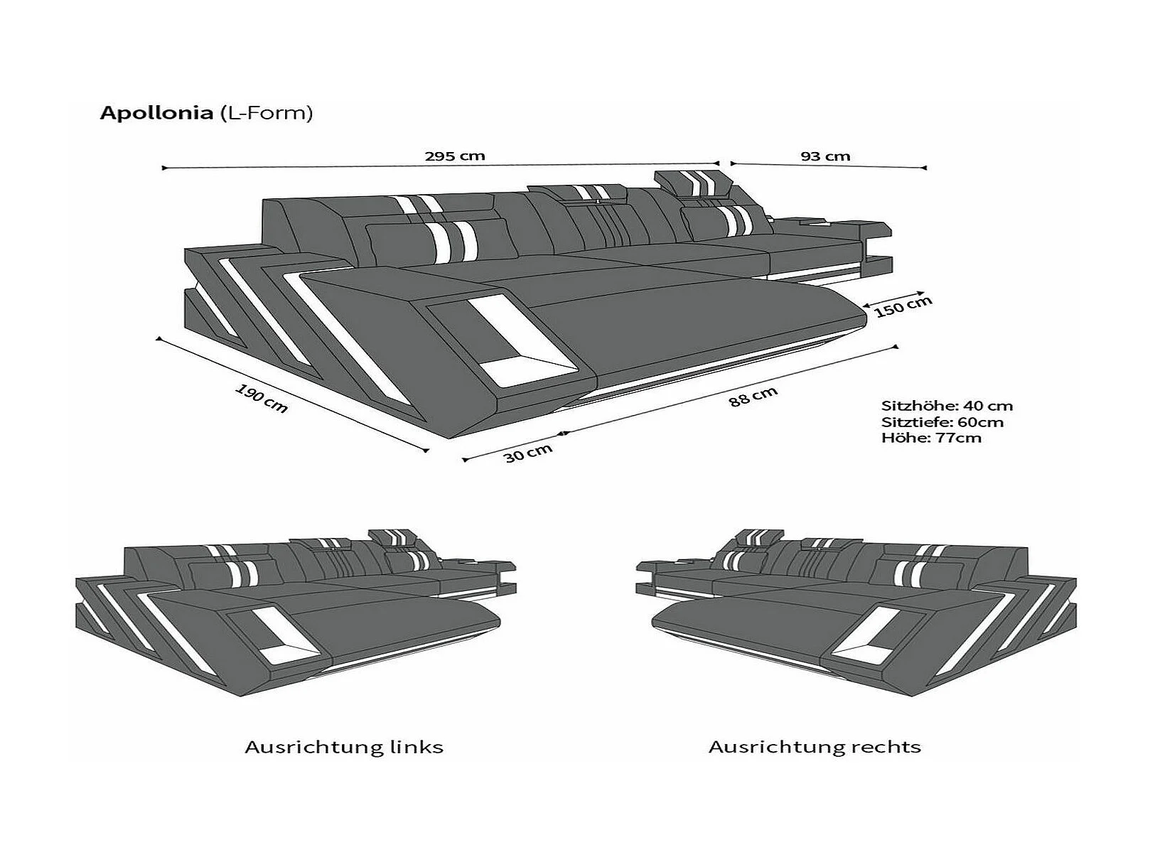 Leder Ecksofa Apollonia L Form Echtleder Pink Schwarz Links