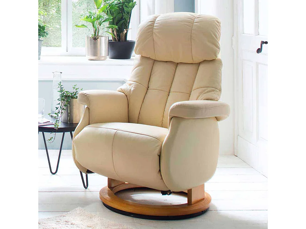 Leder Fernsehsessel in Creme Weiß elektrisch