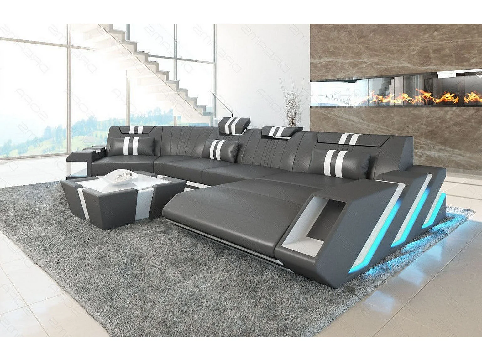 Ledersofa Apollonia C Form Büffelleder Grau Weiß Rechts