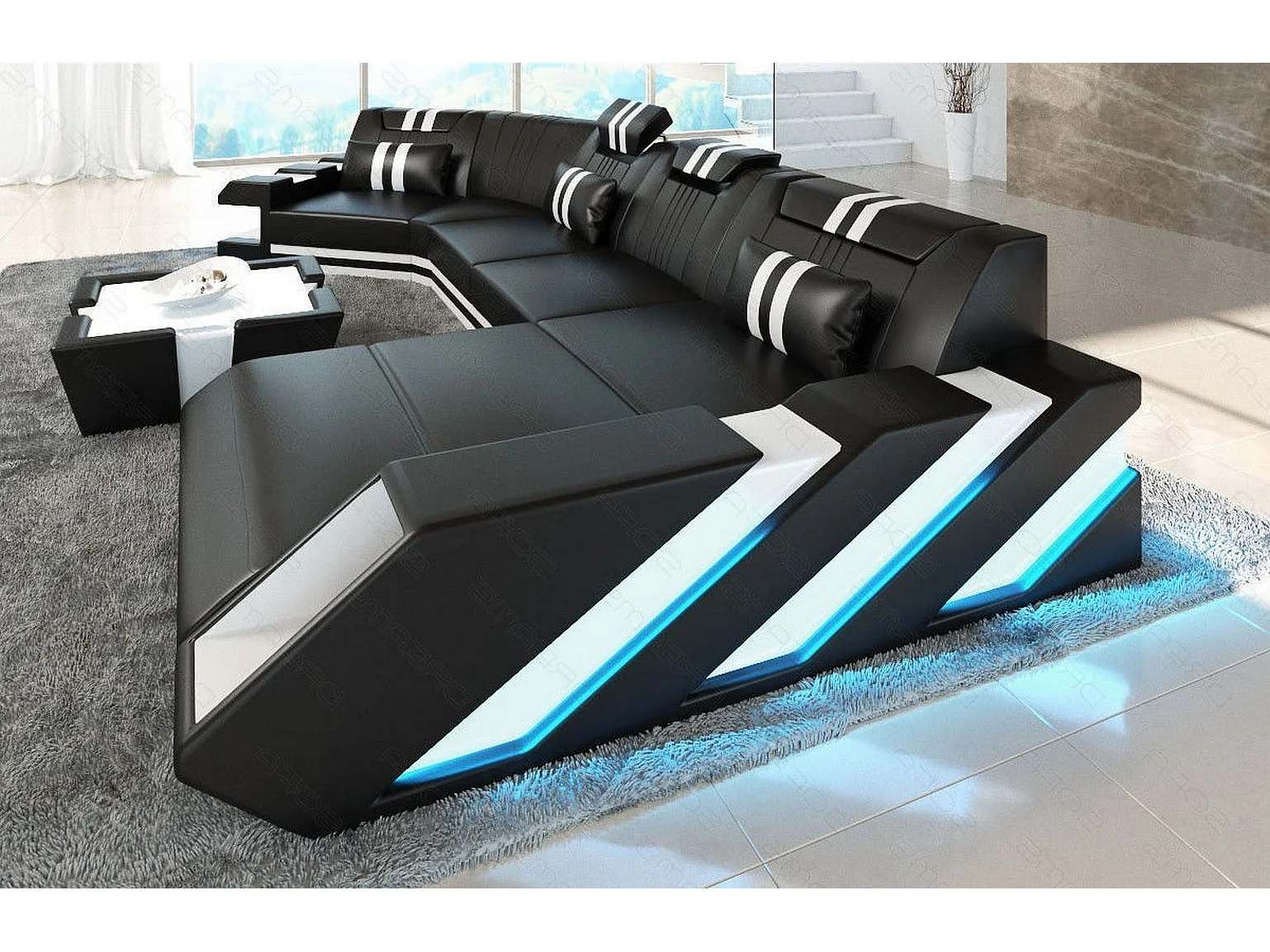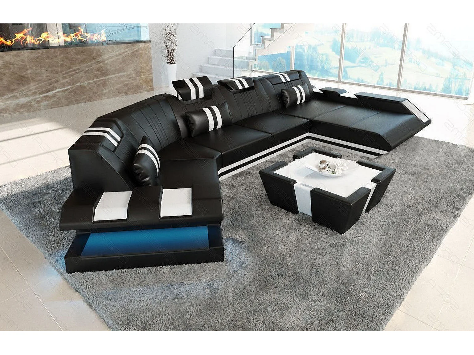 Ledersofa Apollonia C Form Büffelleder Schwarz Weiß Rechts